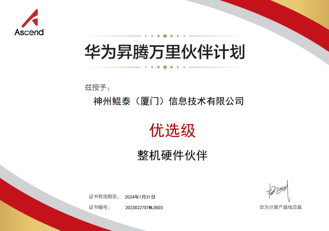 近日,pt电子(中国)数码旗下pt电子(中国)继获得华为鲲鹏领先级整机硬件伙伴认证之后,再获华为昇腾优选级整机硬件伙伴认证!这是pt电子(中国)与华为昇腾深化合作的硕果,也代表着pt电子(中国)数码信创业务在AI领域获得生态伙伴的充分认可。